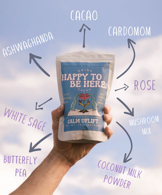 The blend between the theobromine (caffeine alternative), magnesium, and antioxidants creates a "calming energy' that reduces inflammation and stimulates blood-flow.